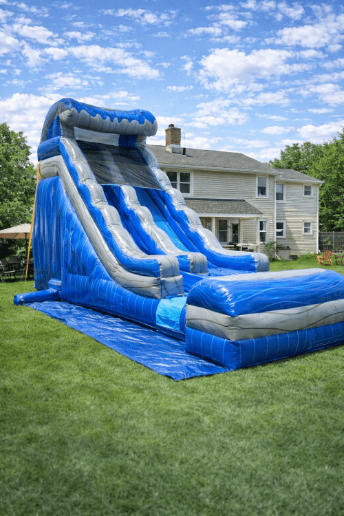 Make a splash at your next event with the stunning Marble Blue Aqua Splash 18ft Inflatable Water Slide—perfect for backyard parties, birthdays, school events, and more. This eye-catching slide features a sleek marble blue design, built-in sprinkler system, fast-sliding surface, and a large splash pool for hours of cool, refreshing fun. Crafted from durable, commercial-grade vinyl, it’s safe, sturdy, and professionally set up for your convenience. Whether you're planning a summer celebration or just looking to beat the heat, the Marble Blue Aqua Splash is the ultimate inflatable water slide rental for all ages.